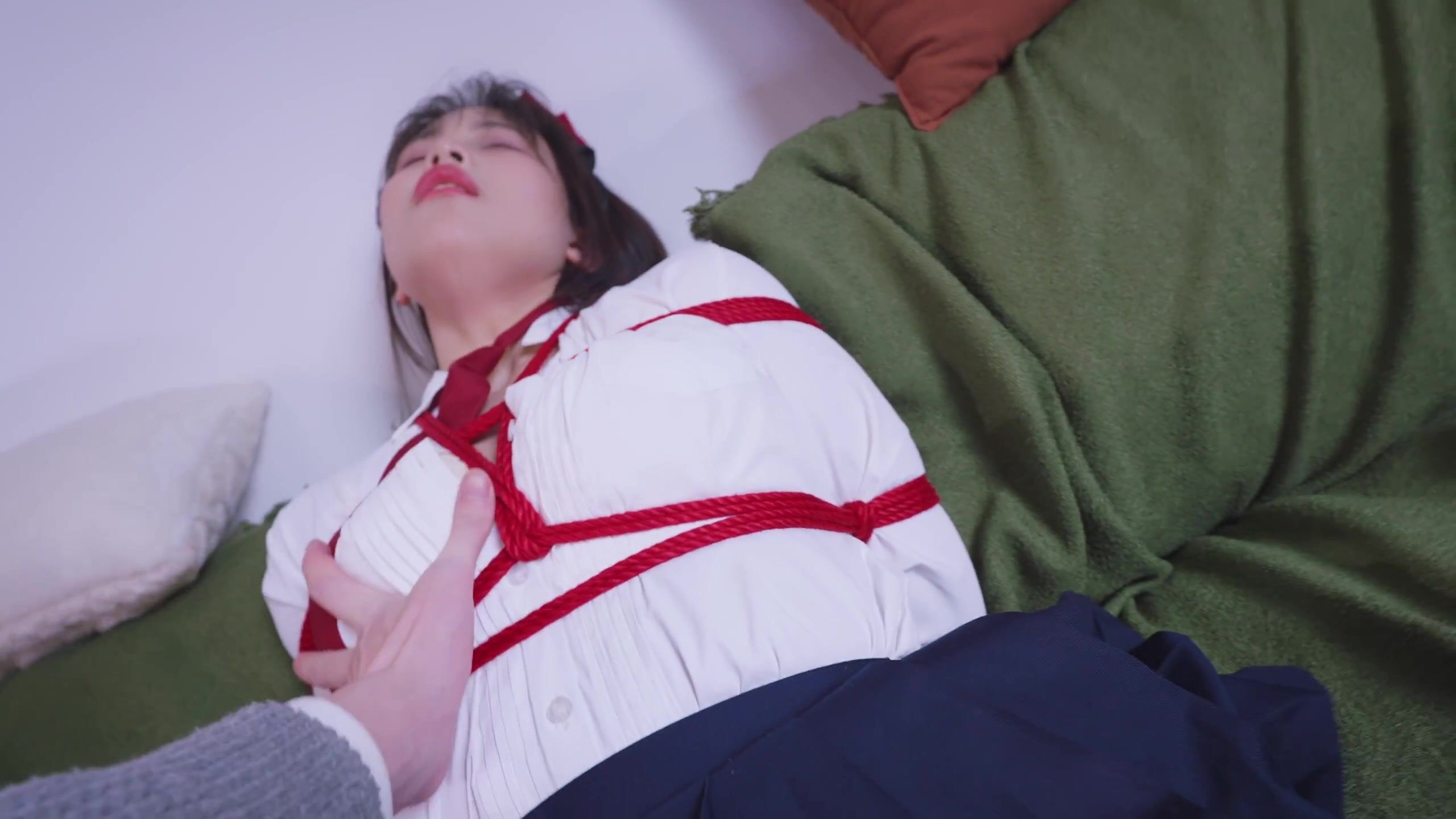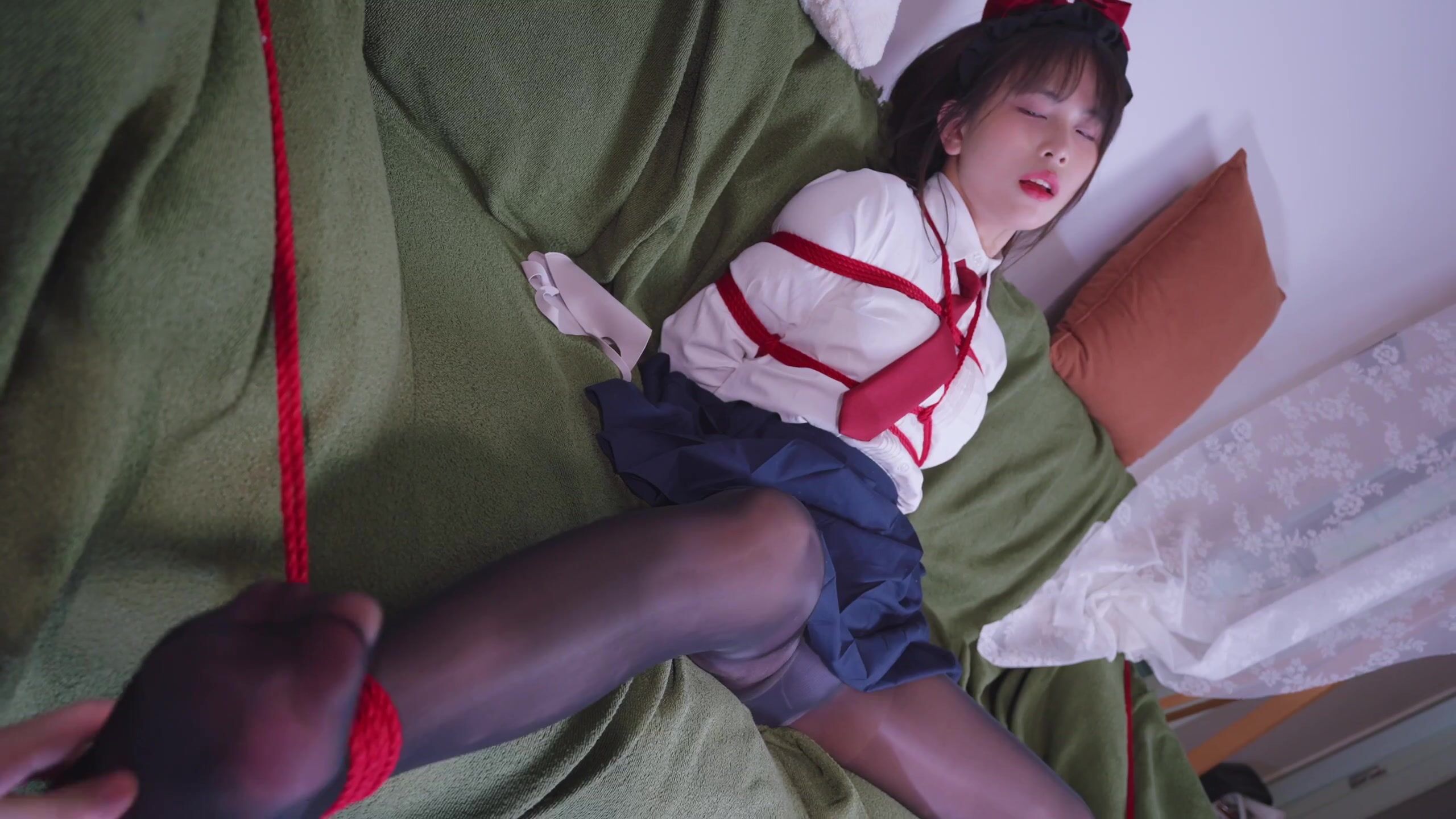 162【丝米】《珊瑚的紧缚日记Ⅱ》jk装黑丝珊瑚双腿分开束缚,挠痒和棒棒的抚慰已经让她内裤湿润,长时间的吊缚让她无力而又更加敏感