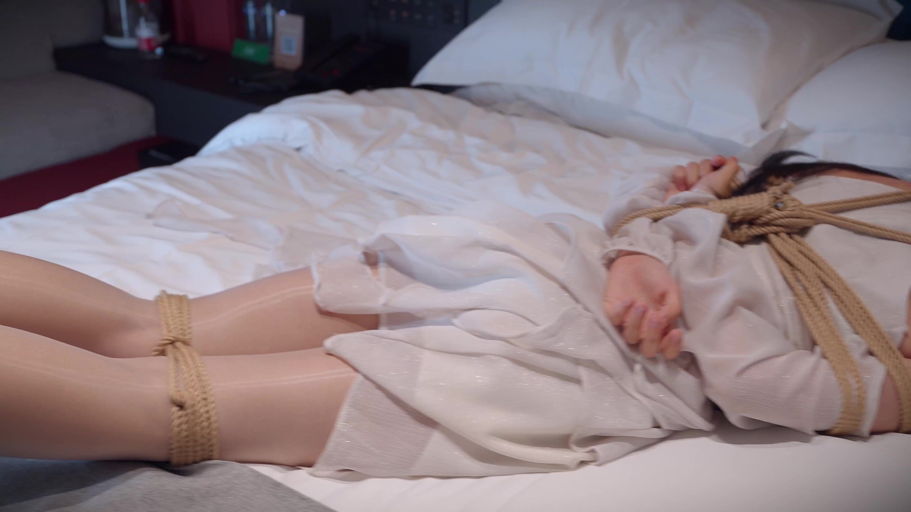 55【丝米】【4K】《约绳日记4》白丝大长腿、娇嫩的小姐姐被绑起来玩弄,丢在床上,独自挣扎,无助可怜,套上项圈,牵着走,姿势难受也只能乖乖听话…(1)